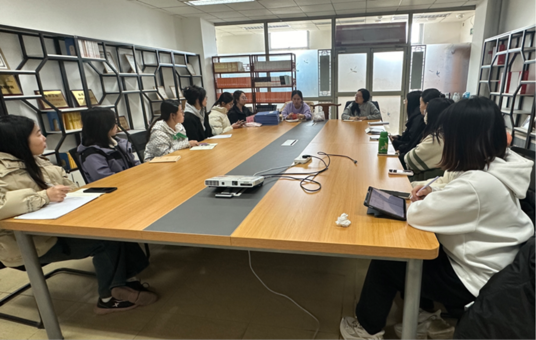 党建中心于近日召开工作推动会,总结前期工作成果,部署下一阶段重点任务。党建中心指导教师郭艳、李雪莹主持会议,发展部、秘书部、实践部全体成员参加会议。