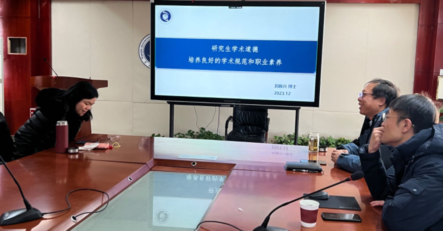 论坛由研究生教务科科长王巨克主持,刘振兴副教授以学术道德为引,围绕维护学术尊严、恪守学术规范、增强职业素养等方面进行讲解,通过分享实际案例,帮助研究生树立正确的道德观、科学观。