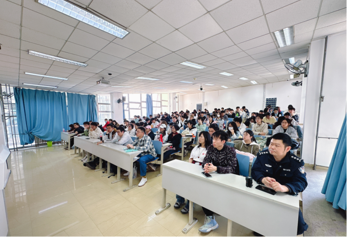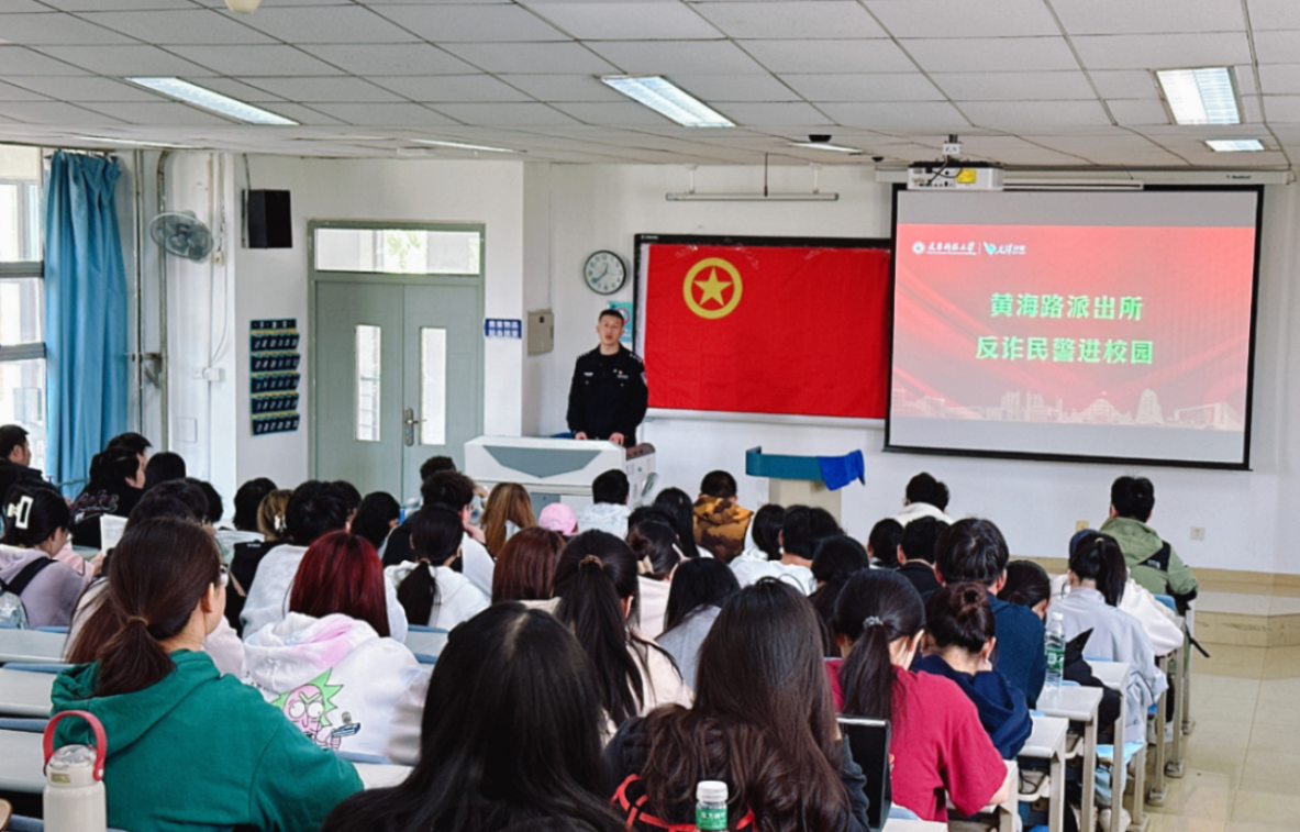 反诈讲座:增强防范意识,守护财产安全。为有效提升学生的反诈“免疫力”,切实守护师生的财产安全,学院邀请黄海路派出所民警刘警官以校园频发的诈骗案例为切入点,深度剖析“刷单返利”、“虚假购物”、“伪装客服”、“游戏诈骗”和“抖音直播带货”等骗局,通过情景模拟还原诈骗话术与作案流程,现场教学正确使用国家反诈中心APP预警功能,强化“不轻信、不点击、不转账”的防范意识。同时,刘警官还就校园非机动车丢失、贵重电子产品占座遗失等案例,提醒同学们规范文明存放车辆,强化同学的财产保护意识。