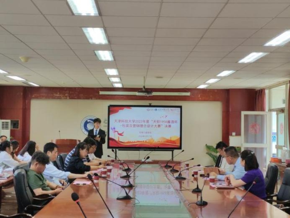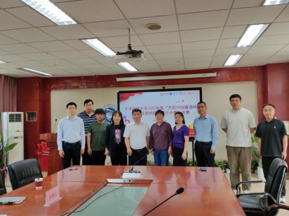 2023年度“天轻1958酱酒杯-包装及营销理念设计大赛”于5月17日在滨海中院2号楼208举行,中轻天科(天津)生物技术有限公司总经理孙根元、中轻天科(天津)生物技术有限公司市场经理张婷婷、经济与管理学院党委副书记刘阳、食品科学与工程学院党委副书记聂慎德、成人ai