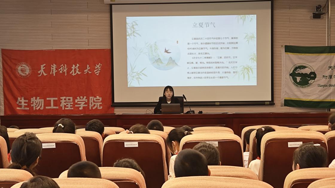 、中新友好图书馆、天津经开区蓝天救援队联合天津外国语大学附属滨海外国语学校小学二部举办立夏主题宣讲活动,旨在普及节气知识,探寻立夏与生物工程的关联,让青少年在趣味中感受节气文化,解锁自然科学奥秘。