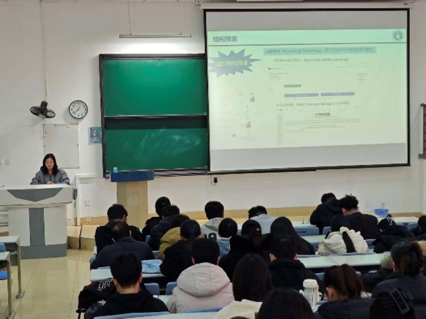 在学院科学道德与学风建设宣讲活动中,吴新明首先以《分子动力学模拟辅助酶的理性设计》为题分享。她从酶设计的研究背景切入,结合自身科研实践,详解介绍了分子动力学模拟在蛋白结构预测、分子对接中的应用,还现场演示了PDB数据库、SWISS-MODEL等工具的使用方法。她结合实例强调,科研中需严守数据真实性、规范工具引用,“每一步模拟结果都要经得起复现”。研一新生们认真记录,纷纷表示从师姐的分享中既学到了科研方法,也明确了学术诚信的底线。