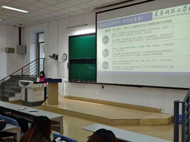随后,王宇以《提升软实力和竞争力的要点》为主题展开分享。她先聚焦科研“软实力”,从沟通表达、团队协作、时间管理等维度,结合实验数据汇报、课题组讨论等日常场景,解析其对推进科研项目的关键作用,并给出“主动参与学术交流”“制定分阶段任务清单”等可落地的提升方法。后围绕硬实力的核心构成,包括文献检索与分析、实验设计与操作、论文撰写与投稿等科研核心技能,结合自身经验分享了高效文献阅读技巧、实验数据记录规范等实用内容,同时补充了奖学金评分中硬实力相关指标的注意事项,用清晰案例帮助研一新生建立系统认知。现场新生认真记录要点,纷纷表示师姐的分享兼顾“软实力”与“硬实力”的提升,为大家的学术生涯提供了正确指引。