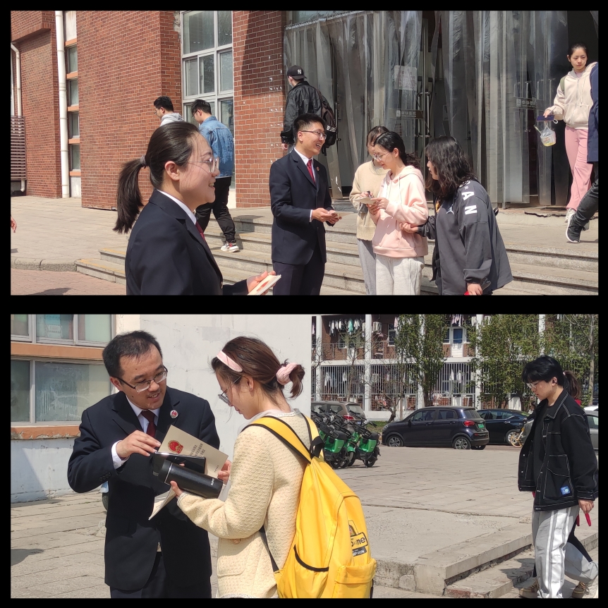中午12点到12点40,在学校新食堂外的小广场,通过拉设国家安全宣传横幅,向师生发放国家安全宣传手册和手提袋,国家安全知识采访问答的方式,检察官们和成人ai