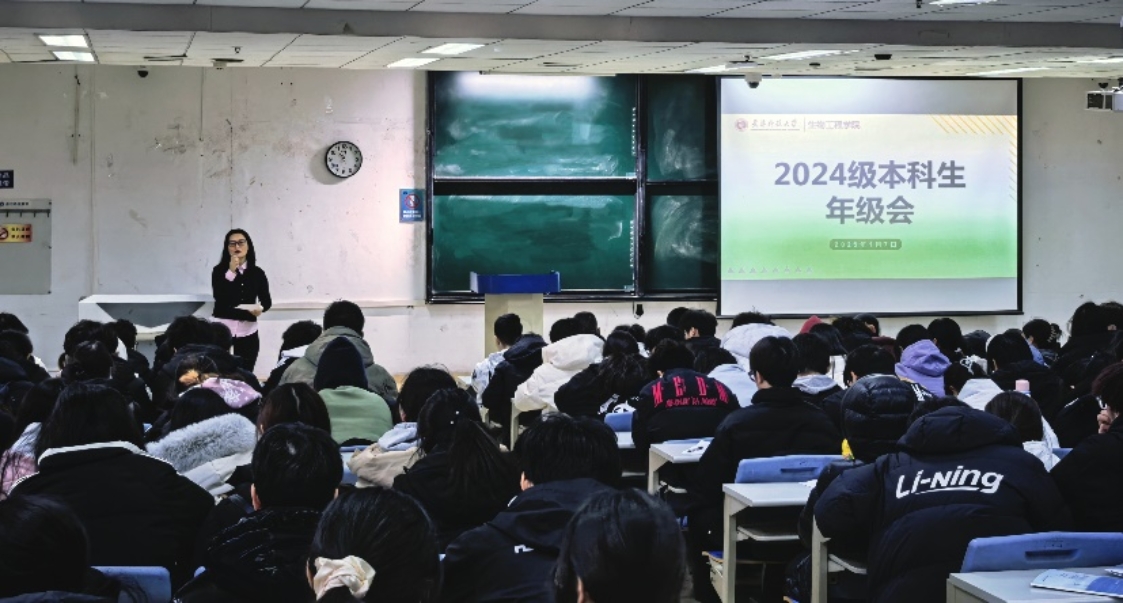 2024级本科生在滨海校区图书馆第三阶梯教室举办“筑安全基石,逐成长梦想”年级大会,2024级全体本科生参加,辅导员任艳萍和吕彦楠主持。