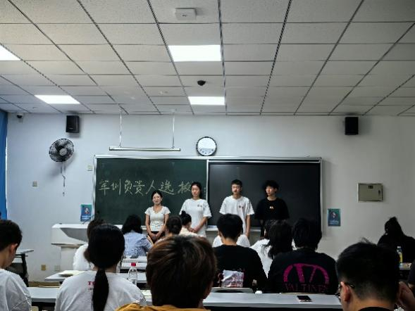 2024年9月6日上午,阳光明媚,微风轻拂,由2024级新生辅导员任艳萍和吕彦楠组织开展的2024级新生军训负责人选拔工作正如火如荼地进行着。此次选拔工作旨在为即将到来的新生军训挑选出有责任心、有领导能力的学生负责人,确保军训工作的顺利开展。