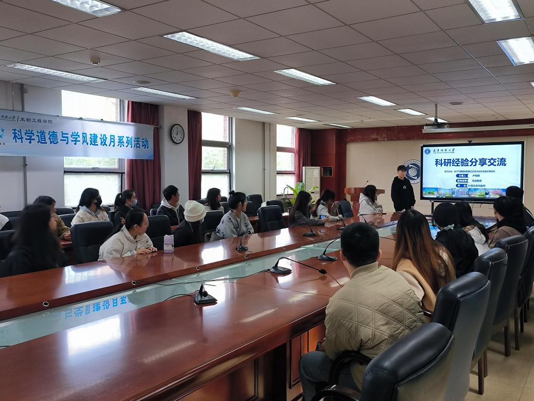 研究生科学道德与学风建设月主题宣讲第二讲。本次活动邀请年度国家奖学金获得者卢明辉同学,带来了一场题为“科研工具在生物工程领域的应用与实践”的专题讲座。卢明辉结合自己在科研过程中的亲身经验,详细介绍了现代科研工具如何助力科研项目。