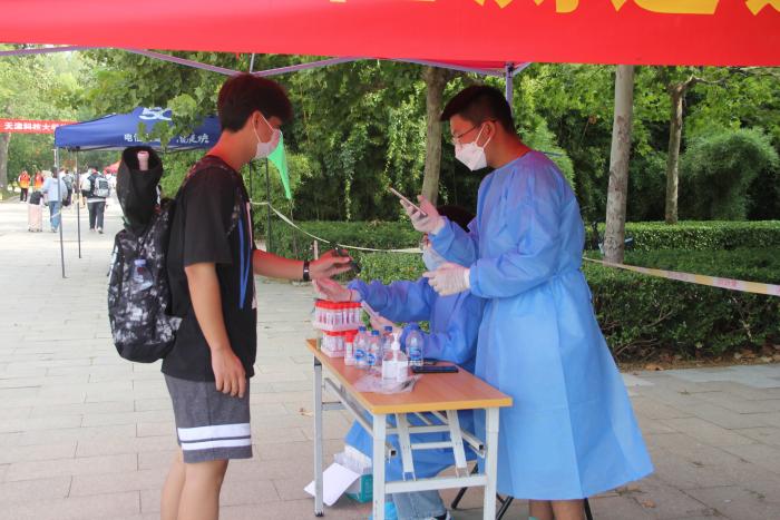 接站点处,志愿者们查验核酸报告、引导扫入校码、搬运行李;校门口处,志愿者疏导人员、帮助行李托运和指引方向,为新生们送上来自学院的第一份温暖;报到点前,志愿者们收取台账、核验核酸、身份验证,核验科大通缴费记录、办理绿色通道;寝室楼下,支部党员积极分子扛起行李、进宿舍开展防盗防诈翻篇安全教育宣讲;新生核酸检测点位,志愿者们录入信息、分发试管,协助完成新生入校核酸。各岗位志愿者在把好校园疫情防控关的基础上,帮助新生们顺利入校,为新生们提供了最有力的陪伴和帮助。